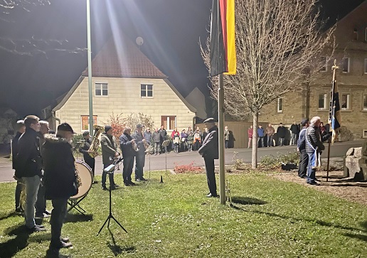 Grettstadts Feier am 15.11. wurde nach dem Gottesdienst von Ehrenabordnungen der Reservistenkameradschaft und der VdK, sowie von der Kapelle Mauder und etwa 25 Bürgern begleitet. Die Ansprachen tätigten 3.Bürgermeisterin Ruth Volz und Thomas Meuchler im Namen der Soldaten.
