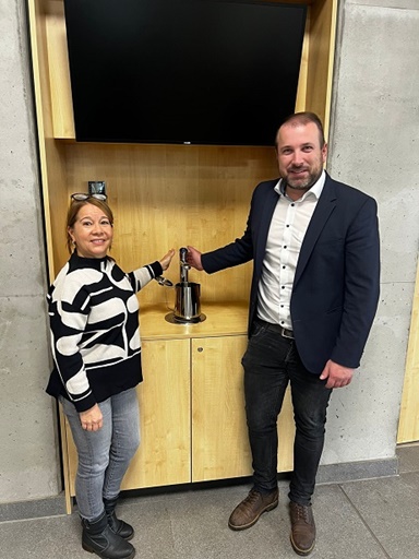 Bürgermeister Stefan Rottmann dankte der Geschäftsleitung Jennifer Triest, aber auch dem ehemaligen Geschäftsleiter Walter Weinig. Der Trinkwasserspender ist sehr beliebt bei den Schülerinnen und Schülern, erklärt Schulleiterin Jana Niedermeyer.