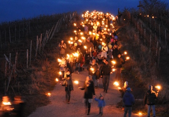 Fackeln, Feuertonnen und (Advents-)Fenster – das 1. Adventswochenende 2025 steht in Nordheim ganz im Zeichen der Eröffnung der Weihnachtsstraße. Der Fackelzug startet gegen 16 Uhr am Samstag, 29. November 2025, am Weinkino. Kinder können ihre Martinslaternen mitbringen, alle anderen Teilnehmenden erhalten Fackeln, die übrigens kostenfrei zur Verfügung gestellt werden. Es geht durch die Weinberge vorbei an Feuerschalen hinunter ins Dorf, wo die „Weihnachtsstraße“ feierlich eröffnet wird.