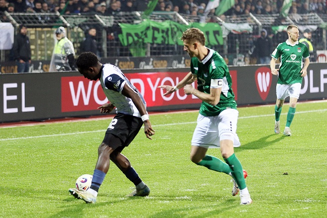 So erklärt sich der Sieg der Mannheimer um ihren zweifachen Torschützen Terrence Boyd. Der musste zum 0:1 nur abstauben, nachdem niemand zuvor Kennedy Onyedika Okpala halten konnte. Der machte gezählte 74 Sekunden nach dem Ausgleich von Ekin Celebi (Mike Dellinger hatte Manuel Wintzheimer bedient, der passte auf den Torschützen), das 1:2 selbst. Wieder in nicht aufhaltbarer Manier.