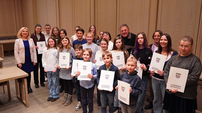 Voller Stolz präsentierten die Kinder und Jugendlichen ihre Preise, die Ihnen zuvor von Landrätin Tamara Bischof übergeben wurden