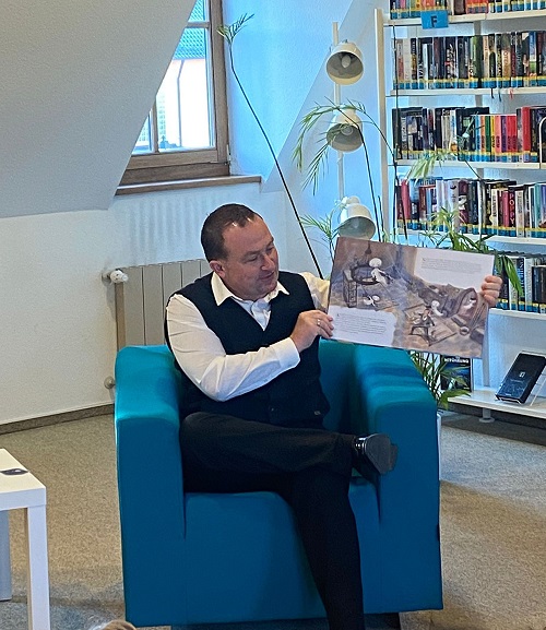 Erster Bürgermeister Christian Keller beteiligte sich an der Akti on und begrüßte eine Gruppe der „Sonnenkinder“ im Lesesaal der Bibliothek. Mit dem Buch „Das kleine Gespenst – Tohuwabohu auf Burg Eulenstein“ hatte er eine altersgerechte Adaption des Klassikers von Otfried Preußler dabei.