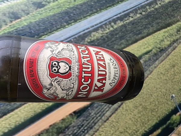 Natürlich gab´s keinen Wein zum Essen, sondern das gute Bier aus Ochsenfurt von der Brauerei Kauzen. Und zwar wieder ein paar von diesen ausgezeichneten starken Doppelböcken namens Noctuator, der vorsichtshalber nur in 0,33-Flaschen erhältlich ist.