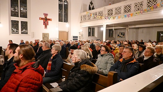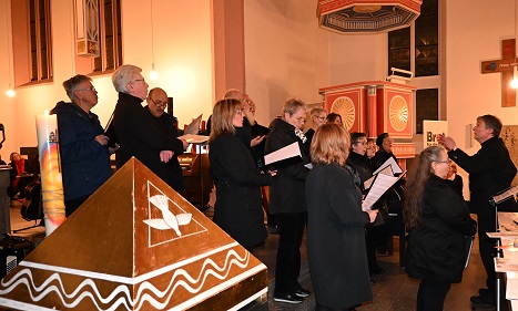 Nicht alltäglich, die Darbietungen von Klaus Götzelmann mit seinen beiden Panflöten und dem Krummhorn, teils solistisch, teils in wunderbarer Harmonie mit anderen Musizierenden, nämlich Alfred Müller (Gitarre), Rainer Verne (Akkordeon, Gesang), Nelli Schneider (Orgel, Klavier) und Kristina Trinks (Gesang). Hauptorganisator Reinhold Lamprecht entlockte dem Katholischen Kirchenchor vier Lieder, die teils klassisch, teils modern gesetzt waren und große Bandbreite bewiesen.