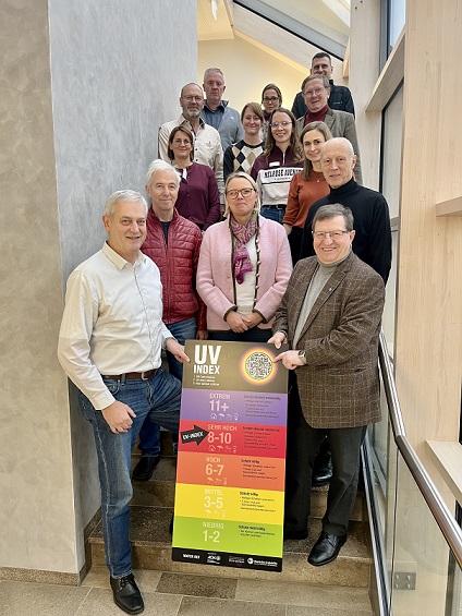 Auf dem Bild: Die Übergabe von vier UV-Index-Tafeln war ein Bestandteil der Vorstellung des neuen AOK-Gesundheitsberichtes für den Landkreis Rhön-Grabfeld. (Foto: Christian Hüther / Landkreis Rhön-Grabfeld).