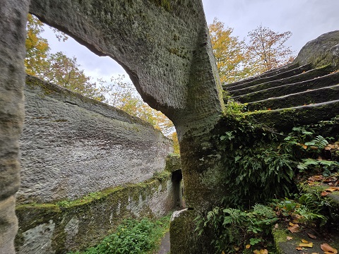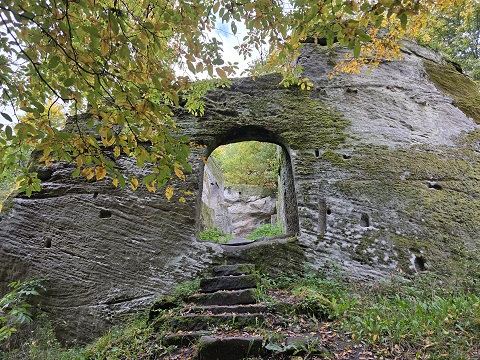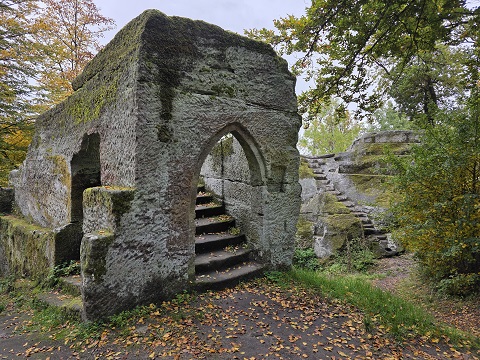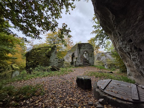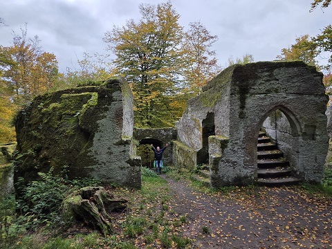 EBERN – Wer mal in der Gegend von Ebern im Landkreis Haßberge ist, sollte sich unbedingt eine der vielen Burgruinen anschauen. Eine der sehenswertesten ist Rotenhan. Frei zugänglich, direkt an der Verbindungsstraße gelegen mit kleinem Parkplatz, dennoch irgendwie mitten im Wald und eines der wichtigsten Geotope Bayerns.