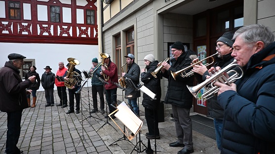 - Die Kapelle Rolf Mauder eröffnete und schloss die Weihnachtsfeier der Siedlergemeinschaft auf dem Grettstadter Rathausplatz.