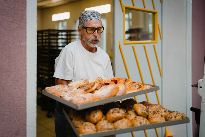 Seit über 40 Jahren steht Thomas Wolz in der Backstube der Bäckerei Wolz in Greßthal. Die Bäckerei hat er damals von seinen Eltern übernommen. Mit einem Hauptgeschäft, zwei Filialen und einem Verkaufswagen versorgt er die Gemeinde Wasserlosen mit ihren acht Gemeindeteilen. Rund 80 Tonnen Mehl im Jahr verarbeiten Bäckermeister Wolz und seine drei Mitarbeitenden zu einem vielfältigen Sortiment aus Brot, Brötchen und süßen Backwaren. Nach der Entscheidung, Bio-Rohstoffe einzusetzen, beließ er zunächst die bisherigen Verkaufspreise. Zum einen, weil er so von Euphorie gepackt war, dass er nicht lange nachgedacht, sondern einfach gehandelt hatte.