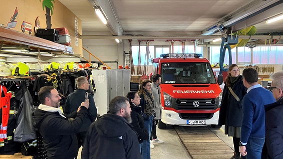 3: Im April 2025 wurde die Region Mateh Yehuda von schweren Waldbränden heimgesucht. Die Delegation aus Israel war daher bei einem Besuch bei der Freiwilligen Feuerwehr Eibelstadt besonders interessiert an der Ausrüstung zur Brandbekämpfung und an den Vorkehrungen zum Katastrophenschutz.