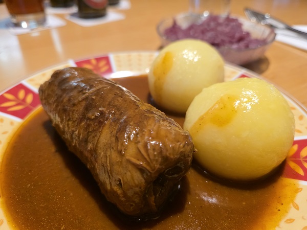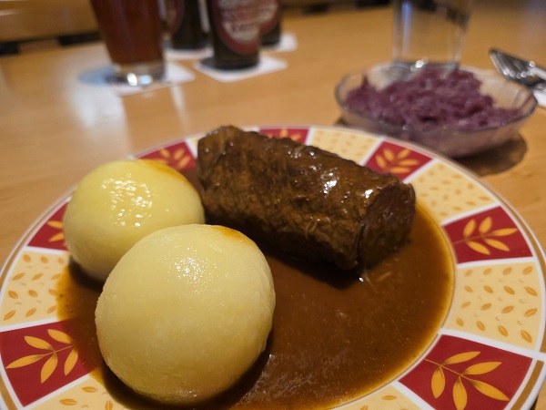 Zu den letzten Noctuator-Doppelbock-Starkbieren der Brauerei Kauzen aus Ochsenfurt aus der vergangenen Saison gab´s diesmal etwas, was man sich schon vorher extra wünschen muss bei den Wirtsleuten: Rouladen mit Klößen und Rotkraut! Sowas liebt doch eigentlich jeder, oder?