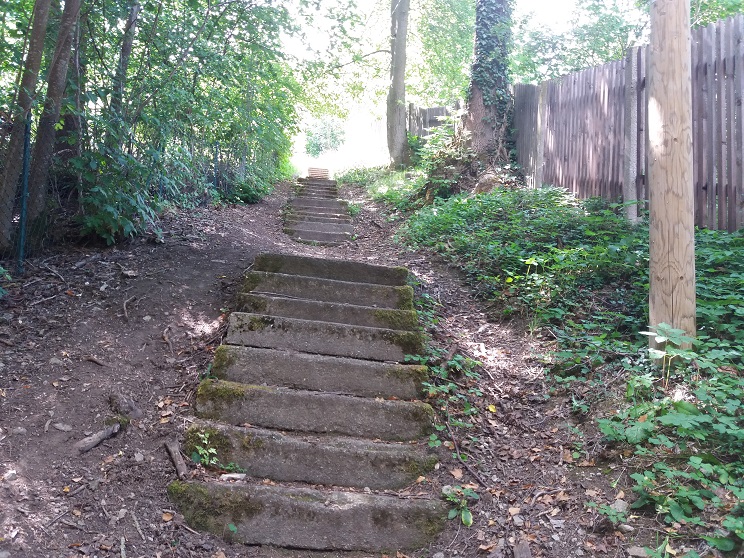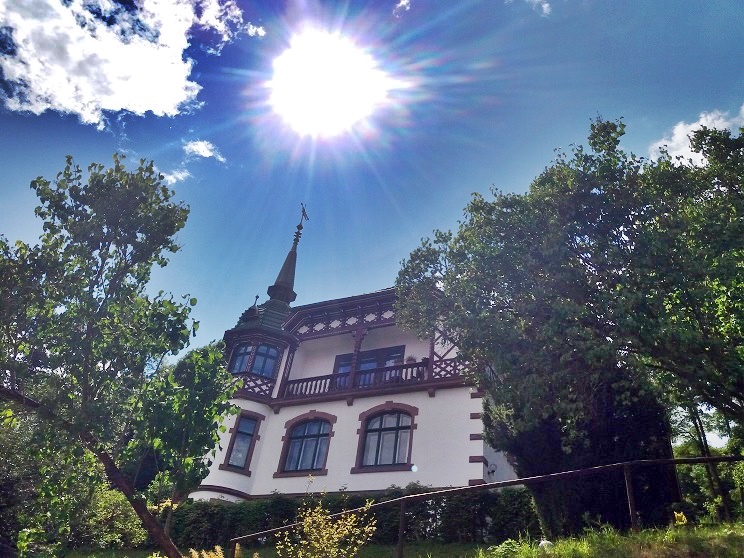 Wir laufen noch ein bisschen weiter in nördlicher Richtung, um dann streng nach Süden einzuschlagen und den Weg zurück anzutreten, der mit fast ständigem Blick auf das nördliche Meiningen und die Plattenbauten des Stadtteils Jerusalem verläuft. Leider hört man nun auch verstärkt den Lärm des Verkehrs. Das Dietzhäuschen ist dann nochmals ein schöner Aussichtspunkt, ehe der Pfad durch den Wald zurück zur Brücke an Schloss Elisabethenburg führt.