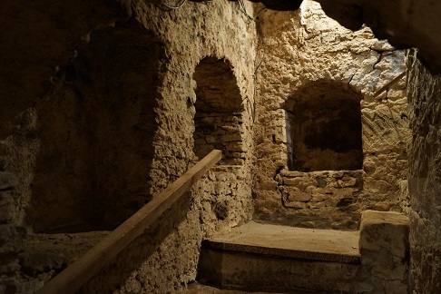 Interessant ist auch der gepflasterte alte Innenhof des Gebäudes aus der Zeit der Spät-Renaissance, durch den man zum Abstieg in den Gewölbekeller kommt.