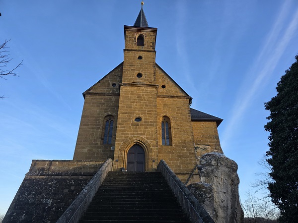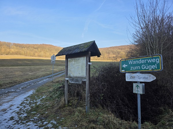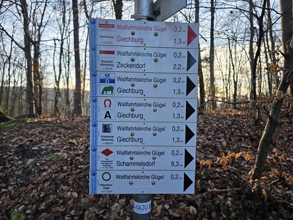 Denn es gibt hier einen komfortablen Wanderparkplatz, von dem aus man wunderbar eine Wallfahrtskirche ansteuern kann. Nämlich die Gügelkirche St. Pankratius. Vom Parkplat z aus ist es nicht viel weiter als vielleicht 1,5 Kilometer, allerdings den Berg nach oben und daher nicht ohne. Wer faul ist: Es gibt auch einen Parkplatz oben, den man aber vom Norden aus ansteuern muss, die kleine Wanderung führt vom Süden zur Sehenswürdigkeit, neben der sich auch eine Gaststätte befindet, die allerdings schon lange geschlossen hat und die gerade renoviert wird.