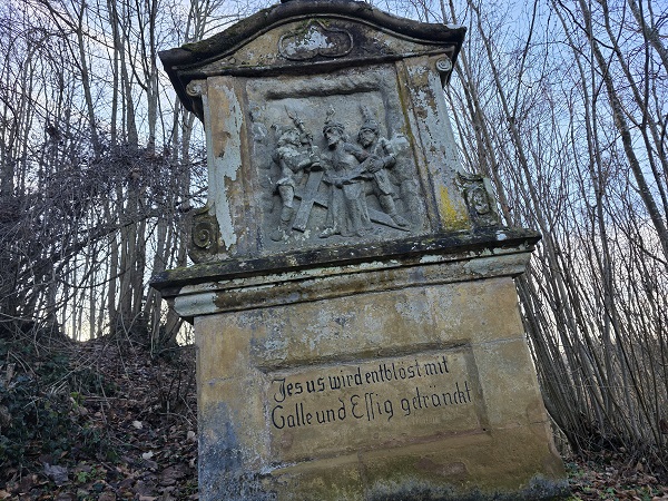 Wer oben ist, kann den Stationsweg ablaufen oder nach Nordwesten blicken zur Giechburg (siehe Beitrag unten vor den vielen danach folgenden Fotos). Die Möglichkeit des Nutzens eines Rundweges besteht, wer ein bisschen mehr laufen möchte als die beiden Schonunger an diesem Tag. Und ja: Auch bei der Giechburg befinden sich Parkplätze, dort hat die Gaststätte (https://giechburg.online/) sogar einen höchst einladenden Betrieb.