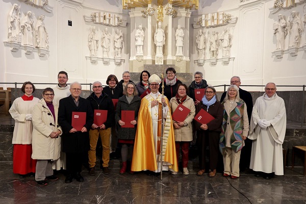„Ich freue mich sehr über Ihre Bereitschaft, diesen wichtigen Dienst zu übernehmen“, dankte der Bischof. Nach den Worten von Dr. Markus Münzel ist es bereits der fünfte Ausbildungskurs, der nach einer intensiven Ausbildung nun mit der Beauftragung abgeschlossen wurde.
