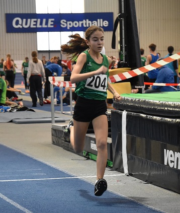 Mit einem eindrucksvollen Start-Ziel-Sieg und gut vier Sekunden Vorsprung gewann Hanna Hümmer (DJK) in der Altersklasse U18 mit 2:25,10 min überlegen die Meisterschaft über 800m. Ihr Vereinskamerad und Trainingspartner Simon Baunach verpasste den Titelgewinn im 800m-Rennen der M15 nur um wenige Zehntelsekunden und freute sich über Platz 2 mit Bestzeit von 2:18,36 min.