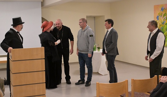 Die honorigen Herrschaften begrüßten gesondert ihren Ururururenkel Marcel Neubert, Baumeister Mario Söllner und den Obersten Dorfvorsteher (Bürgermeister) Volker Karb. Dieses Dreigestirn bekam dann aber auch gleich die Kritik des Barons ab, da keiner der Vorjahresaufträge abgearbeitet sei.