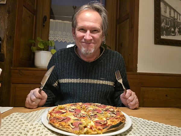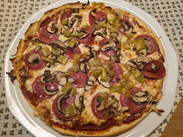 Die Wahl fiel auf – wie langweilig eigentlich! – zwei Mal eine Pizza Salami, die zudem mit Pilzen und Peperoni belegt ist. Super lecker, reichhaltig, zufrieden stellend – und trotzdem mit der offenen Chance, beim nächsten Besuch mal wieder ein Putenschnitzel zu probieren.