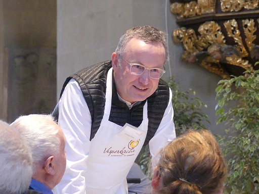 Die Gäste ließen sich Hirschbraten und Blumenkohlmedaillons schmecken. Über 40 Gastgeberinnen und Gastgeber sorgten für einen reibungslosen Ablauf. Auch der Landesbischof ließ es sich nicht nehmen, am Tisch zu bedienen – ebenso wie MdL Paul Knoblach und Stadtrat Oliver Schulte, die beide schon seit vielen Jahren ehrenamtlich dabei sind.