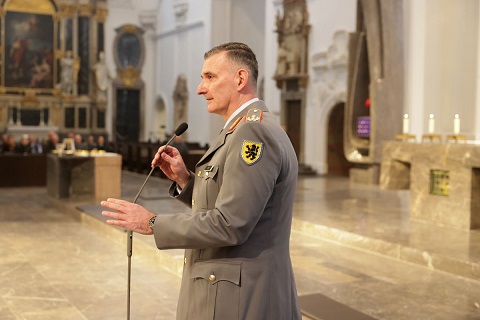 Die katholische Soziallehre betone den gerechten Frieden, fuhr der Weihbischof fort. Er gründe nicht allein auf Abschreckung, sondern auf Vertrauen, Dialog und Solidarität. Das verlange unter anderem, Krieg als das zu sehen, was er ist: „Ein Scheitern, in dem kein Heil zu finden ist. Wenn Soldaten in diesem Geist handeln, schützen sie einen Frieden als kostbares Gut oder versuchen ihn bestmöglich wiederherzustellen, wo er gefährdet ist oder gar verloren ging.“ Der Dienst des Soldaten sei mehr als ein Beruf, sagte Weihbischof Reder: Er sei zuallererst eine Haltung, Verantwortung zu übernehmen und im Friedens- wie auch im Konfliktfall verantwortlich zu handeln. Christus schenke seinen Frieden, damit man aktiv und mutig aus christlichem Glauben handeln könne, damit sein Friede Wirklichkeit werde: „Ein Friede, der entwaffnen kann, weil er um die Kraft der Versöhnung weiß, ein Frieden, der schützt, weil er auch im Ernstfall des Glaubens liebt.“