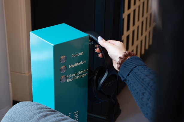 Über die Hörstationen mit den integrierten Kopfhörern können Gäste zwischen drei unterschiedlichen Audioinhalten wählen. Dabei erhalten die Besucherinnen und Besucher mit einer Folge des Postcasts „Staatsbad Bad Kissingen, erzähl mal!“ unter anderem Informationen zu den historischen Gebäuden. Zusätzlich stehen Audioinhalte für eine fünfminütige Meditation und ein Beitrag zur Historie der Stadt zur Verfügung.