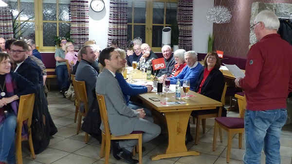 Gut 40 Teilnehmende durfte Ortsvorsitzender Georg Laufer begrüßen, darunter Landrat Töpper und eine Anzahl SPD-Bewerber/innen für Kreistag und Gemeinderat.