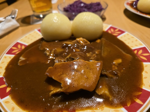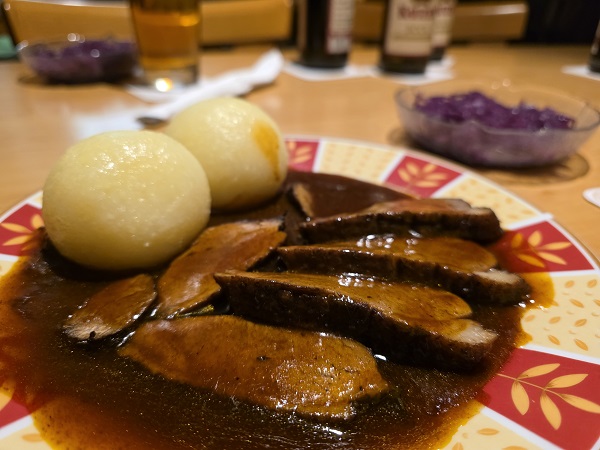 Nein, Michael natürlich nicht. Der entschied sich mal wieder für den mageren Schweinebraten mit Klößen und Blaukraut im Weißen Ross in Schnackenwerth bei Werneck, wo gerade der helle Bock der Kauzenbräu aus Ochsenfurt wieder so genial schmeckt.
