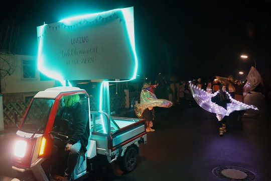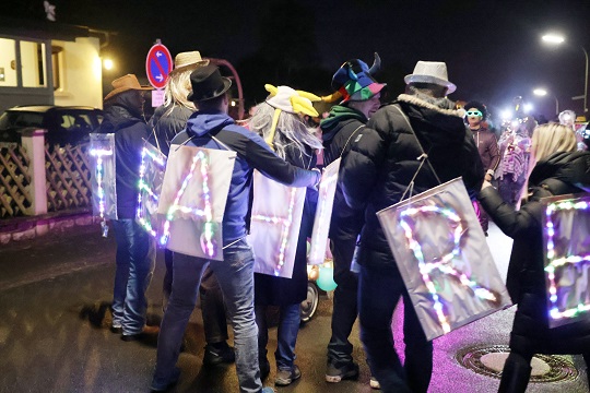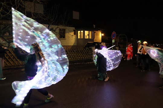 Der Nachtfaschingsumzug (mit anschließender Party an der Hütte Mühlhausen) lockte wohl auch deshalb die Massen an, weil das Wetter entgegen der Prognosen hielt. Geschätzte 5000 Menschen sollen dabei gewesen sein. Beteiligte, die mitgelaufen oder mitgefahren sind, oder eben Menschen am Rande der St. Martin-Straße, auf der vom Westen Mühlhausens bis zum Sportheim des TSV der Zug in Richtung Osten verlief.