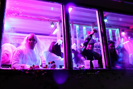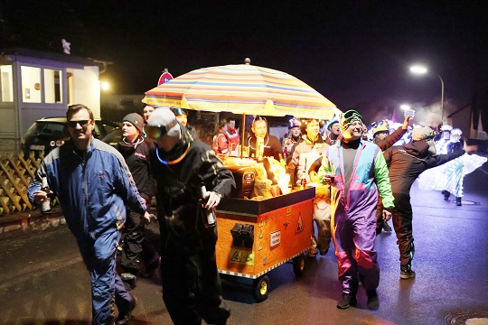 Geworfen wurden von Bonbons über Popcorn unzählbare Mitbringsel der Faschingsmeute. Angesichts der Dunkelheit dürften noch am Tag danach unentdeckte Süßigkeiten auf der Straße liegen.