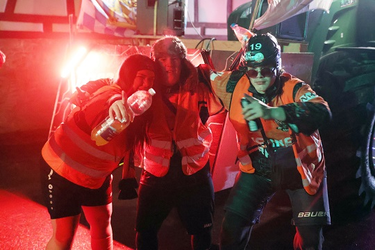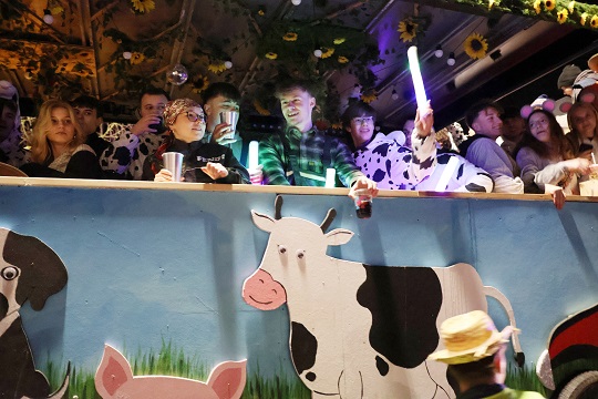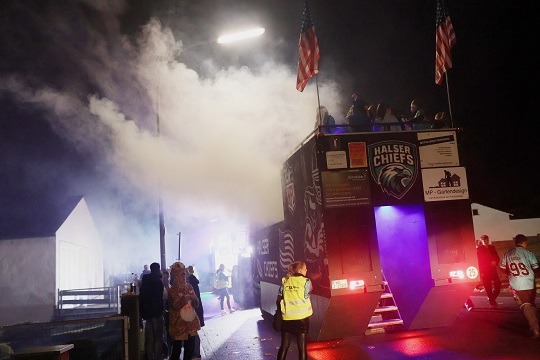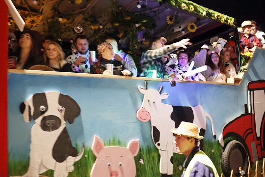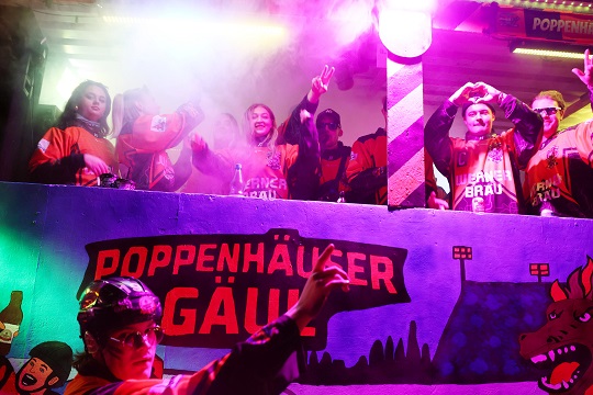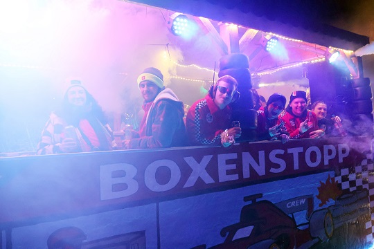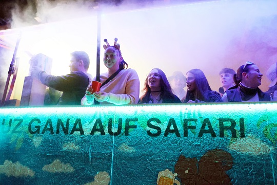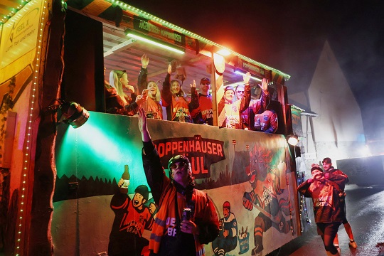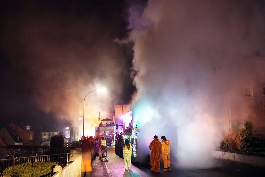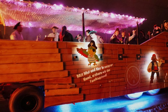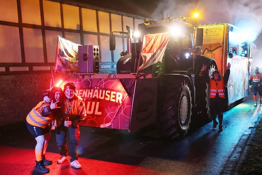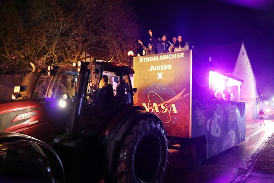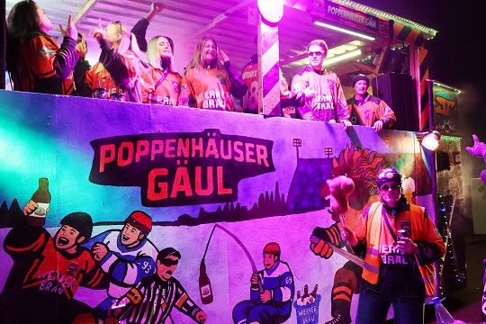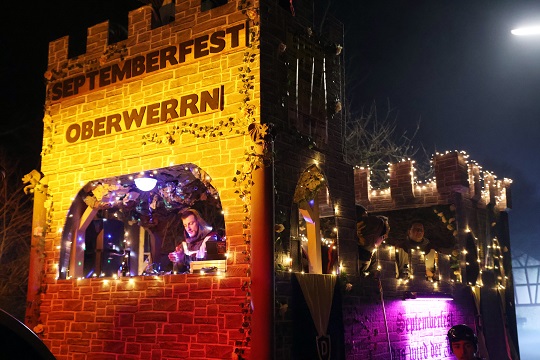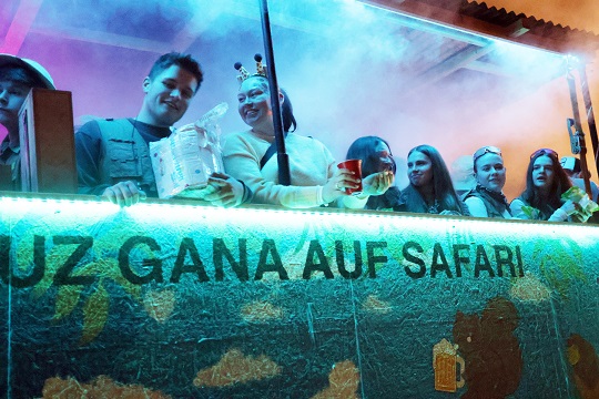 Von überall her kamen die großen Wägen der Faschings-Vereinigungen aus beispielsweise Büchold, Oberwerrn, Poppenhausen, Rieden, Essleben, Pfersdorf oder Stralsbach. Keiner kam ohne Partymusik aus zum Mitsingen und Mittanzen – und anscheinend ist es stets ein Muss, dass solche großen Gefährten mit zahlreichen Personen oben wackeln müssen. Womöglich erzeugt erst das den großen Spaß…