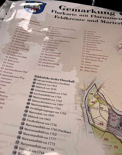 Insgesamt hat er 81 historische Flurnamen in Grafenrheinfeld dokumentiert und 33 Bildstöcke innerhalb des Ortes und weitere 13 in der Flur erfasst. Diesen Teil der Heimatgeschichte wollen die Grafenrheinfelder bewahren und für kommende Generationen sichtbar machen.