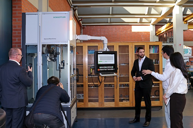 „Schweinfurt ist ja weltweit bekannt als die Kugellager-Stadt“, erklärt Prof. Dr. Sommer das Interesse der koreanischen Besucher. Auch wenn es genau genommen ‚Wälzlager-Stadt‘ heißen müsse, so Prof. Dr. Sommer. Wälzlager kommen überall dort zum Einsatz, wo sich etwas bewegt und Kraft übertragen werden soll – in Auto und Fahrrad ebenso wie in einer Windkraftanlage. Schon den Kelten wird der Einsatz von Zylinderrollenlagern an ihren Streitwagen nachgesagt.