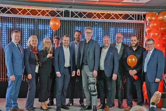 In den Räumen der Ochsenfurter Klingentorpassage begrüßten Hochschulpräsident Prof. Dr. Jean Meyer und Prof. Dr. Sebastian Biedermann, Leiter des TTZ-WUE, außerdem Staatsminister Markus Blume, den Landrat des Landkreises Würzburg, Thomas Eberth, den Bürgermeister von Ochsenfurt, Peter Juks, sowie die Vertreterinnen und Vertreter der Stifterunternehmen.