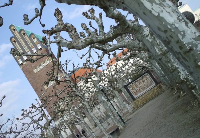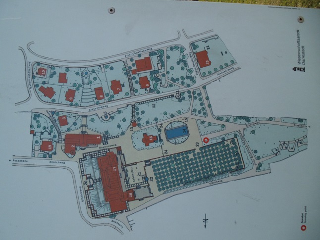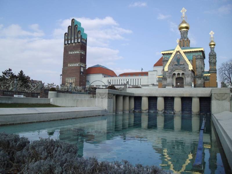 ** Mathildenhöhe: Im Osten der 100.000 Einwohner-Stadt hat diese Künstlerkolonie mit ihren vielen Bauten ganz große Anziehungskraft. Der fast 50 Meter hohe Hochzeitsturm mit seinen fünf Dachbögen, Platanenhain oder die Russische Kapelle mit ihrer Brunnenanlage neben den vielen historischen Häusern faszinieren. Der Turm gilt als Wahrzeichen Darmstadts.