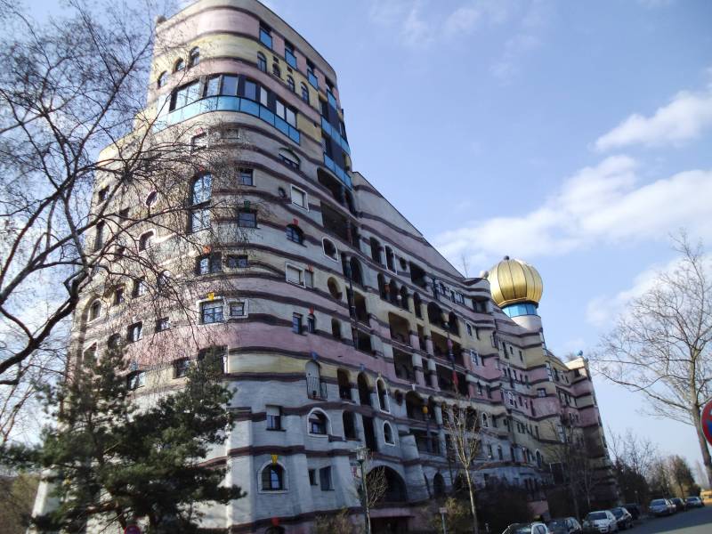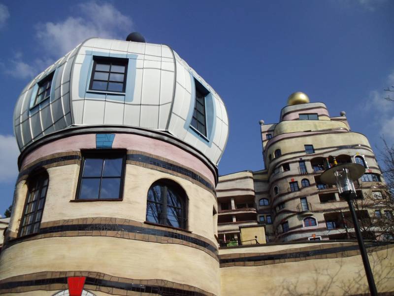 ** Waldspirale: Inmitten des Wohngebietes wurde von 1998 bis 2000 ein zwölfstöckiges Gebäude errichtet, das ganz im Zeichen der Architektur des leider kurz vor der Vollendung verstorbenen Friedensreich Hundertwasser steht. 105 Appartements beherbergt der bunt angemalte Block, bei dem keine zwei Fenster gleich zu sein scheinen. Die Goldenen Zwiebelstürme auf dem Dach fallen schon aus weiter Entfernung auf, ebenso die hoch droben gepflanzten Bäume. Auch die Gartenanlage ist höchst sehenswert.