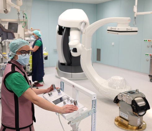 „Wie der Name schon sagt, vereint der Hybrid-Saal die Vorteile einer chirurgischen Operation mit denen einer röntgengeführten Intervention. Dadurch können unsere Patientinnen und Patienten noch schonender und effizienter behandelt werden.“ – Dr. Khaled Hamouda, Stellvertretender Direktor der Klinik für Thorax-, Herz- und Thorakale Gefäßchirurgie