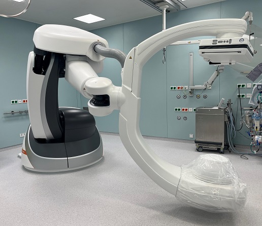Mit dem Umzug wurde die technische Ausstattung des Hybrid-OP‘s modernisiert und deutlich erweitert. Die Bildgebung erfolgt nun über einen flexibel steuerbaren, bodengebundene Roboterarm, während früher eine fest an der Decke montierte Anlage genutzt wurde. „Die neue Bauart ermöglicht eine optimale Flächennutzung, optisch ähnelt der Hybrid-OP einem konventionellen OP-Saal,“ erläutert Dr. András K. Szabó, Leiter des OP-Managements am UKW. „Dadurch finden sich die unterschiedlichen chirurgischen Teams schnell zurecht und der Saal kann sehr flexibel für verschiedene Eingriffe genutzt werden.“