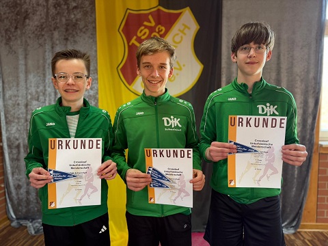 In der Mannschaftswertung der U16 freuten sich Selma Galka, Greta Henninger und Amelie Burgos über Platz 2 sowie Lara Nadler, Lina Galka und Frieda Weeth über Rang 3 (alle FC 05). Milena Retka, Lilly Schenk und Carolina Kemper gewannen für die DJK die Bronzemedaille in der Mannschaftswertung der U14. Starke Leistungen zeigten außerdem Fabio Till, Augustin Retka, Nina, Lars und Jan Müller (alle DJK) sowie Luis Burgos (FC 05).