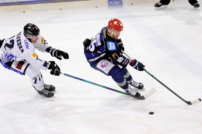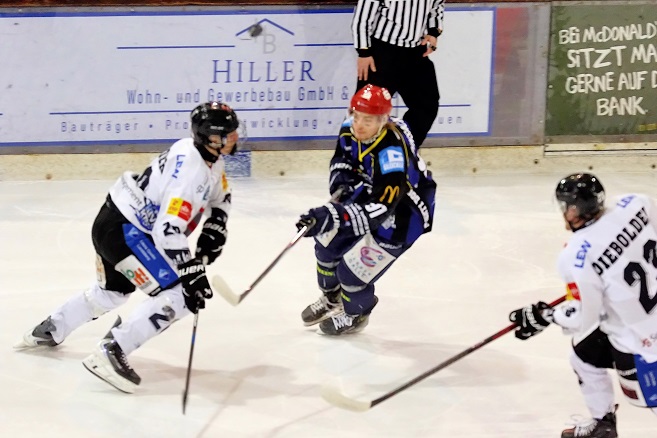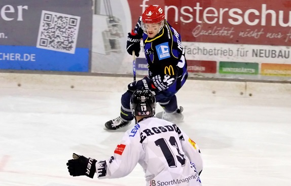 Unser Aufmacherbild zeigt Landsbergs Florian Reicheneder, der den Schweinfurter Konstantin Melnikow verfolgt. Unten weitere Fotos und ein Video.