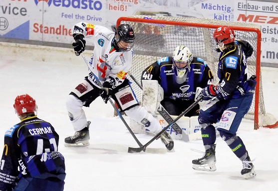 … danach fingen sich die Gäste, glichen mit zwei Mann mehr auf dem Eis (Georg Pinsack und Alexander Asmus saßen auf der Strafbank) noch im ersten Drittel aus. Nach dem frühen 1:2 durch Tom Callaghan im zweiten Abshcnitt rannten die Mighty Dogs wild an, bekamen den Puck nicht ins Tor und kassierten das 1:3 durch Lukas Heß´ zweiten Treffer kurz vor der zweiten Pause – um ohne Goalie Leon Pöhlmann zwei Minuten vor dem Ende mit einem Empty Net-Goal endgültig zu verlieren.