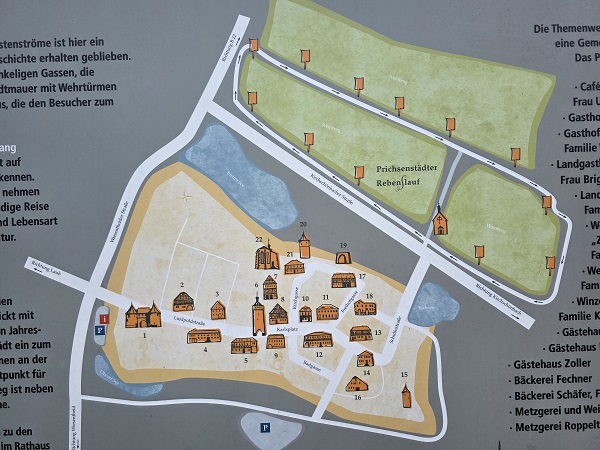 Man kann natürlich auch in den Weinbergen spazieren, wozu es einen eigenen Rundweg gibt: Den Prichsenstädter RebenSlauf, aus marketingtechnischer Sicht ein echter Knaller. Die beiden Schonunger entschieden sich aber für den Historischen Stadtrundgang, parkten direkt vor dem Westtor, liefen durch und entdeckten Fachwerkhäuser und Türme, wie es sie auf so kleiner Fläche wohl kaum ein zweites Mal gibt. Nun gut, vielleicht in Rothenburg ob der Tauber…