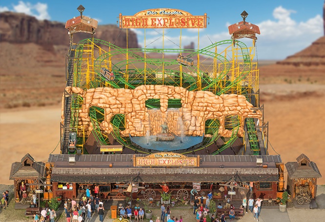 Im Bereich der Schienenbahnen ist in diesem Jahr die kompakte HIGH EXPLOSIVE zu Gast. Die mit Spezialeffekten ausgestattete Abenteuerachterbahn ist eine Attraktion für die ganze Familie. Die rasante Fahrt in Dreierloren geht durch Täler und über Berge in steile Kurven und vorbei an einem See mit Springbrunnen. Die Bahn wurde 2024 mit einem neuen interaktiven Bahnhofsbereich ausgestattet.