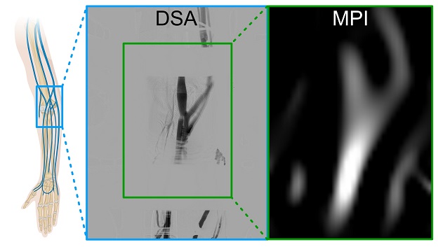 Im Rahmen der Studie führten die Forschenden eine Gefäßdarstellung am Arm durch. Dazu injizierten sie klinisch zugelassene Eisenoxid-Nanopartikel und nahmen deren Verteilung mit einem speziell entwickelten MPI-Scanner auf.