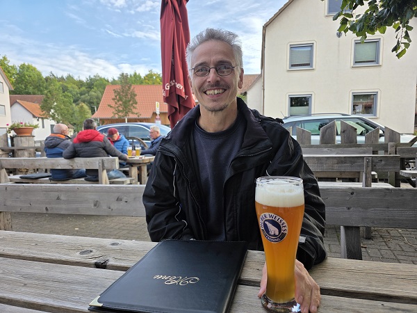 Andreas Staude war beim jüngsten Besuch im Herbst dabei, als man so gerade noch draußen sitzen konnte (aber so gerade noch…) und daher das Weißbier, das dunkle Kupfer und das Unfiltrierte bei Sonnenstrahlen noch besonders gut schmeckte.