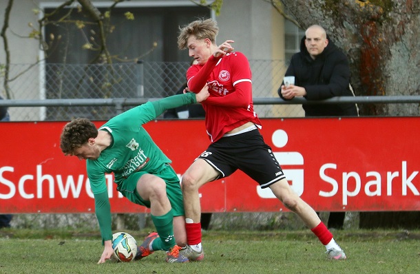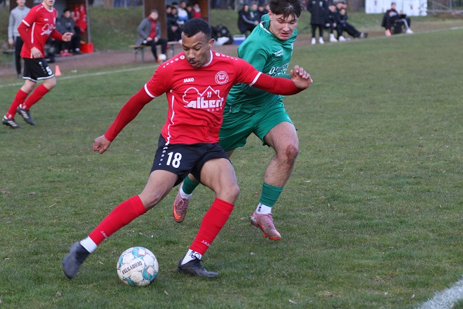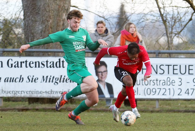 Wobei sich das 4:1 letztlich deutlicher anhört als es war. Die Gäste dominierten zwar schon Halbzeit eins und gingen durch Jimmy Mangold bereits nach einer Viertelstunde verdient in Führung. Doch in der Nachspielzeit der ersten 45 Minuten glichen die Schweinfurter dann doch etwas überraschend aus. Nach einem Foul an Yasir Almagrahi verwandelte Torjäger Dominik Popp den fälligen Strafstoß gegen den Großbardorfer Keeper Nico Stephan.
