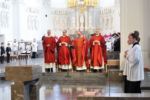 Bischof Jung feiert das Pontifikalamt am Ostersonntag, 5. April, um 10 Uhr im Kiliansdom. Es wird begleitet vom Würzburger Domchor und der Camerata Würzburg unter der Leitung von Domkapellmeister Rüth sowie Domorganist Schmidt mit „Messe in d-Moll WAB 26“ von Anton Bruckner. Solisten sind Sophie Gordeladze (Sopran), Barbara Giouseljannis (Alt), Oliver Kringel (Tenor) und Simon Tischler (Bass). Zur Pontifikalvesper um 17 Uhr mit Bischof Jung singt die Schola Cantorum unter der Leitung von Domkantor Beutmiller. Der Gottesdienst am Ostermontag, 6. April, um 10 Uhr im Kiliansdom wird begleitet von der Choralschola unter der Leitung von Domkantor Beutmiller sowie Domorganist Schmidt mit der Choralmesse „Lux et origo“ und einem Choralproprium. Zelebrant ist Domdekan Dr. Jürgen Vorndran.