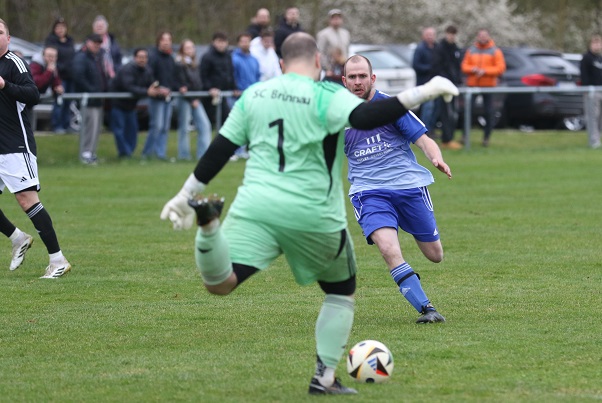 BRÜNNAU / GEISELWIND – Alles war angerichtet am späteren Samstagnachmittag, als der FC Bayern München in der Bundesliga in Freiburg eine Partie in der Schlussphase drehte. Parallel aber gelang das dem TSV Geiselwind beim SC Brünnau nicht. Das Meisterspiel – es ist vertagt.