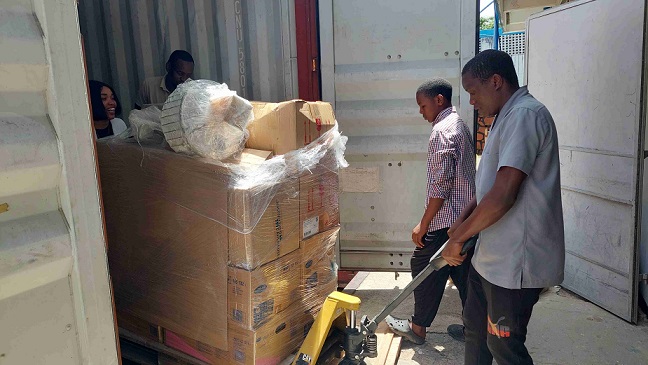 Foto: Peter Heunisch - Im März 2026 trifft der Container auf einem Lkw in Mwanza ein