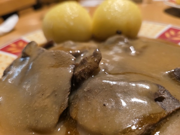 Und ja, Michael isst den Sauerbraten am liebsten mit Bratkartoffeln und Salat, was auf Wunsch eine echte Spezialität in Schnackenwerth ist. Doch die schon auf Bockbier verzichtende Petra bestand auf die klassische Version mit Klößen und Blaukraut, was natürlich ein Klassiker ist und überaus lecker. Die Bilder dürften das beweisen.