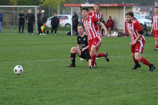 Im Parallelspiel verschärfte der TSV Forst die Sorgen des ebenfalls bedrohten 1. FC Haßfurt mit dem klaren 5:1-Sieg an der Flutbrücke mit unter anderem zwei Toren von Spielertrainer Shaben Rugovaj, um selbst bis auf vier Punkte an Platz zwei und den SC Trossenfurt-Tretzendorf heran zu kommen. Haßfurt hat nun genauso wie Dittelbrunn 28 Punkte, Hermannsberg (mit allerdings noch einer Nachholpar tie in der Hinterhand)genauso wie Schonungen 26. Türkiyemspor Schweinfurt kommt auf 29, die Freien Turner Schweinfurt 2 und der TSV Aidhausen jeweils auf deren 30.